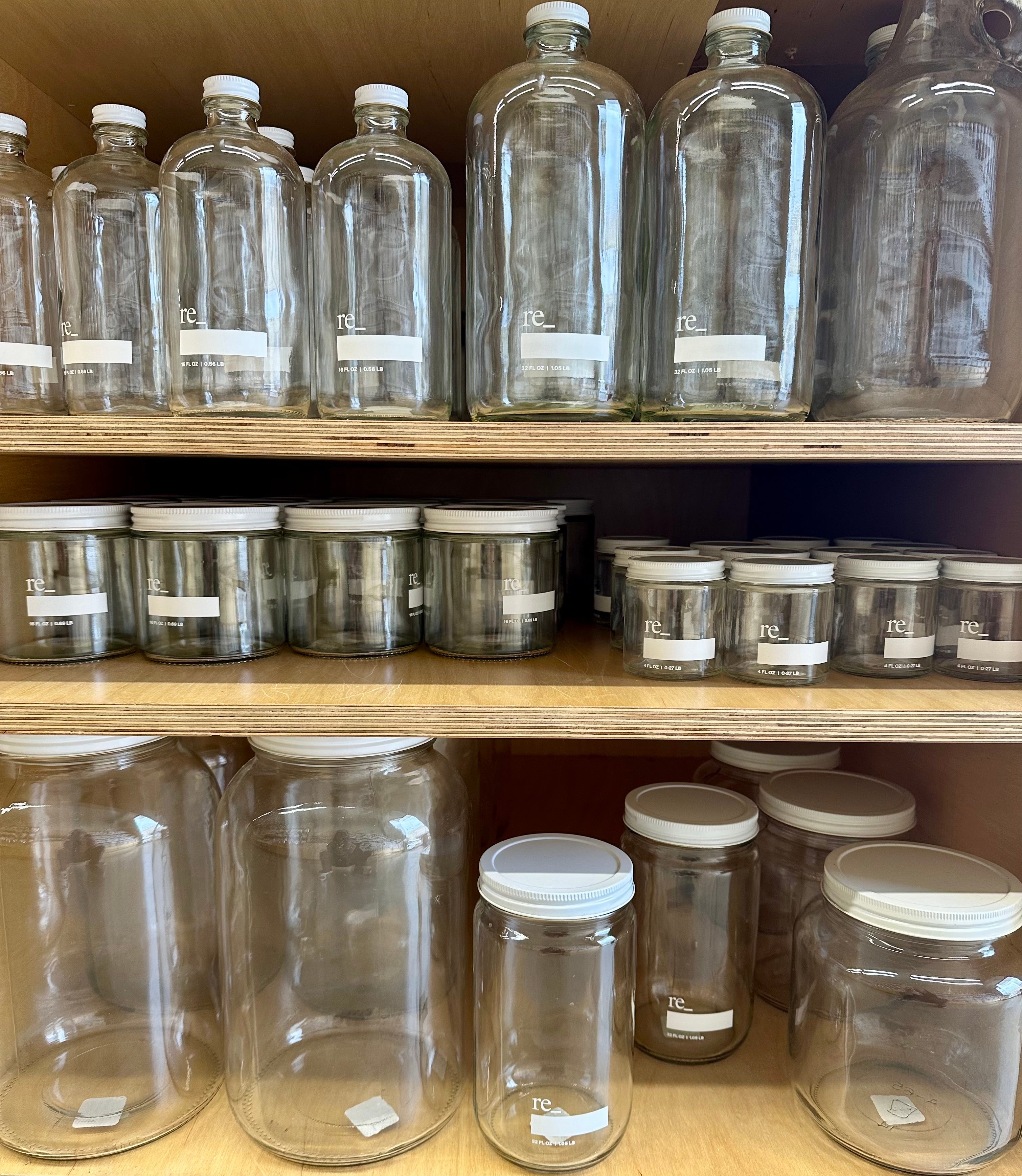 Inspired by recent trips to RE: here in Los Angeles, this idea of exclusively getting ingredients from bulk grocery stores without packaging is pretty miraculous. These stores are popping up all over; a similar concept in NYC is Precycle. You roll in with your own jars and containers, or fill them onsite after purchasing reusable containers from the store. The mix of supplies and ingredients is a revelation. RE: stocks everything from laundry detergent to teas, snacks, and inspiring spices.